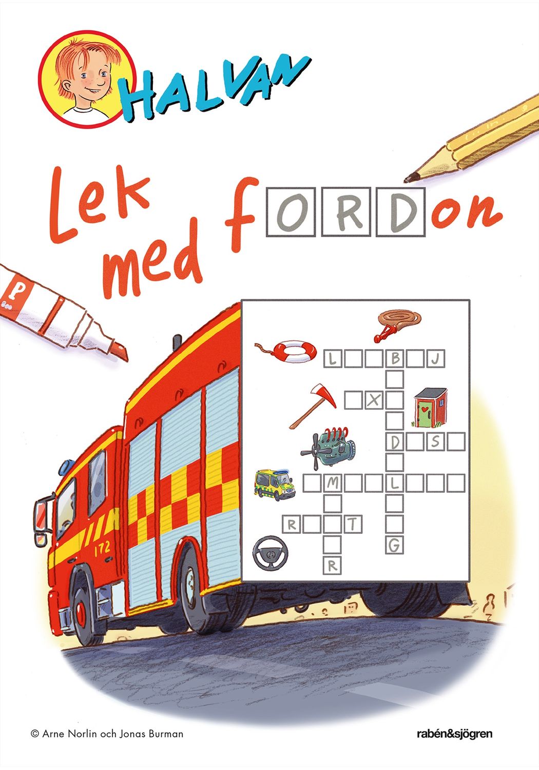 Här leker Halvan både med ord och fordon. Roligt och pyssligt för dig som just börjat bli nyfiken på ord och bokstäver.
