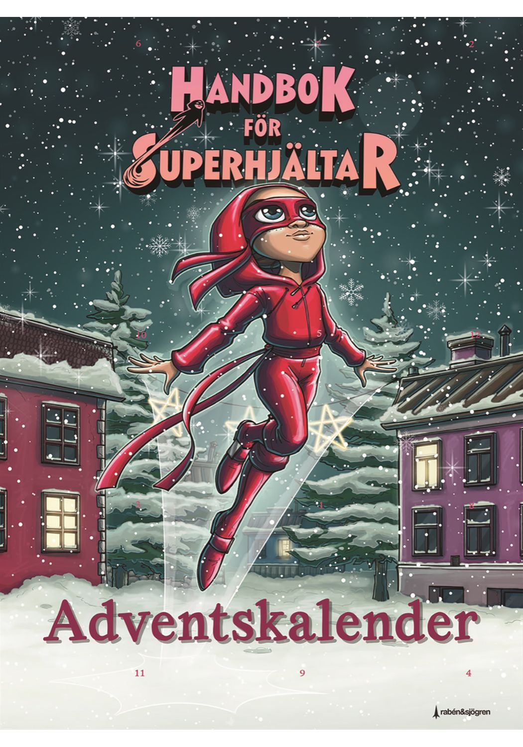 Illustratör: Agnes VåhlundHandbok för superhjältar underhåller och aktiverar ända fram till jul. En kalender med 24 luckor, fyllda med aktivitetsböcker, korta berättelser, klistermärken, julpyssel, pussel och pappfigurer.
