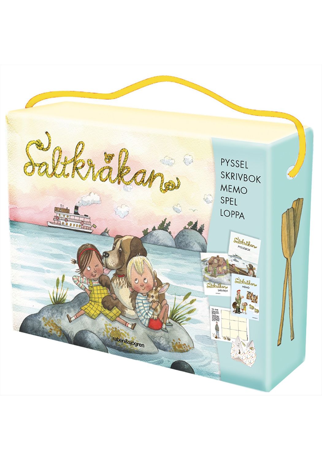 Möt alla de färgstarka karaktärerna från ön Saltkråkan i ett fint kit med pyssel, spel och aktiviteter som man kan ha roligt med under hela sommaren, men även resten av året.
