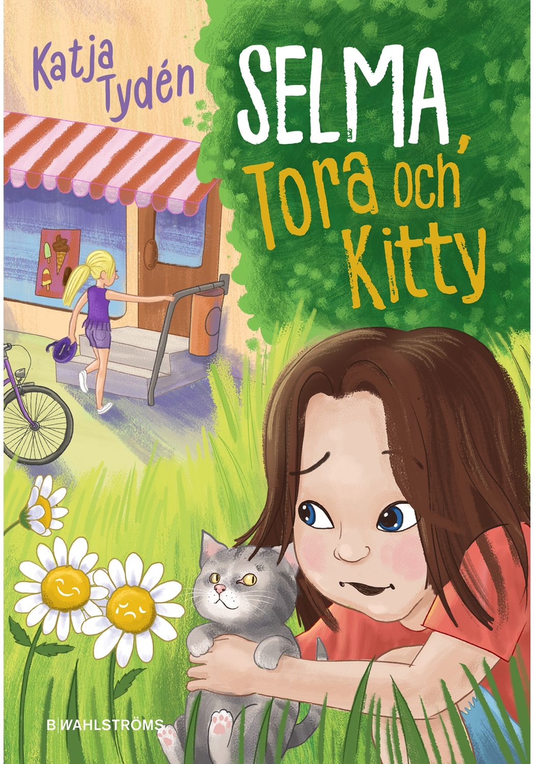 Illustratör: Ingrid FlygareÄntligen sommarlov! Selma är ute på ön med pappa, lillebror och mormor och morfar. Det är lite ensamt på landet, men så träffar Selma Tora. Tora är lika gammal och har precis flyttat ut till ön. Hon bor i det stora vita huset bakom affären, där det finns både badkar och spoltoa och massor av djur! Bäst av allt är kattungarna.