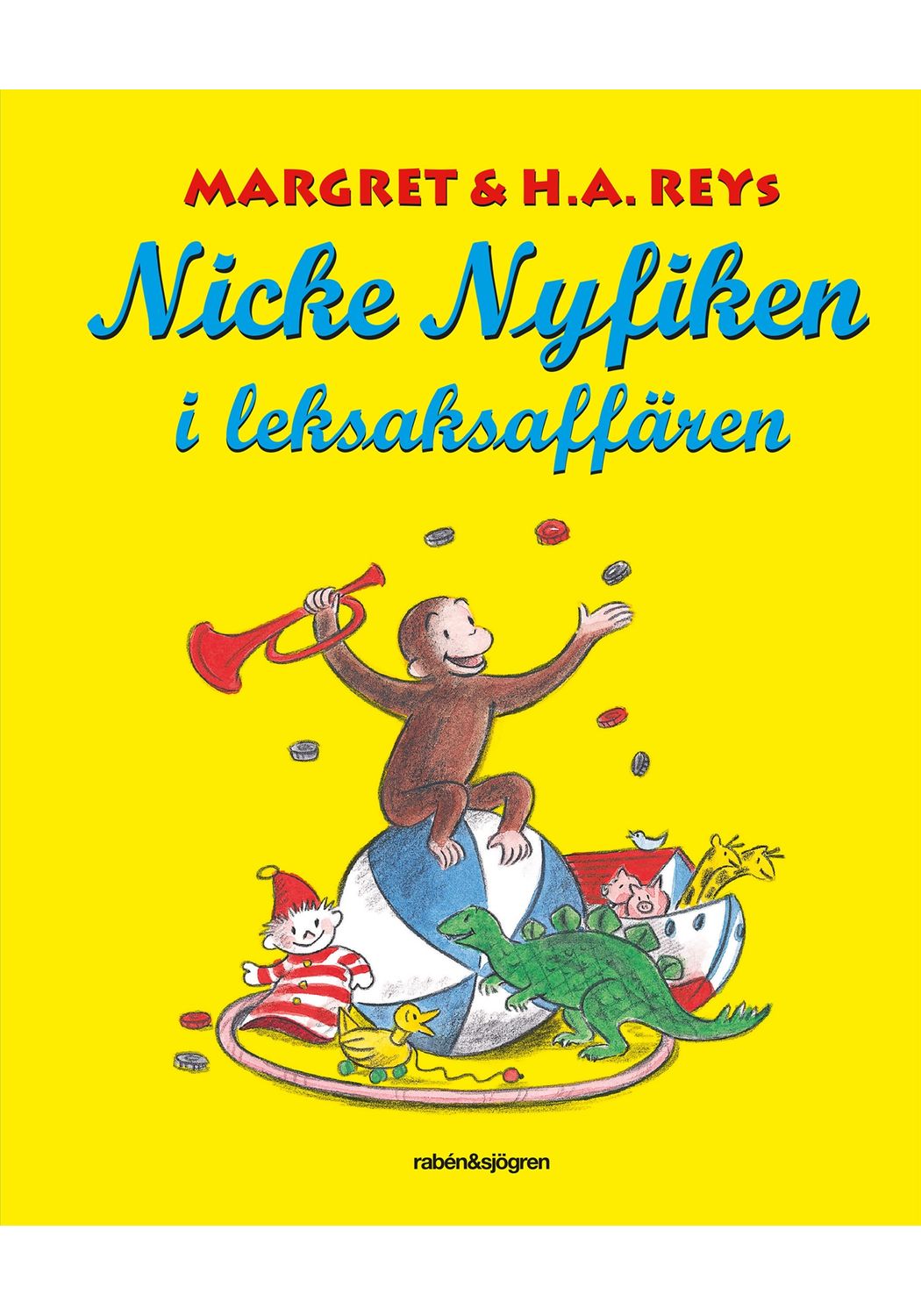 Illustratör: H. A. ReyNicke Nyfiken är en snäll liten apa som är rysligt nyfiken. Idag är Nicke är med på invigningen av en ny leksaksaffär. Oj, vad här finns mycket kul! Men ägaren är inte lika glad över Nicke som klättrar runt på hyllorna och hittar på bus. Han svingar sig i lampan och räcker barnen leksaker. Vilket oväsen! Men ägaren förstår till slut att barnen gillar just den här affären med extra mycket action - tack vare Nicke.