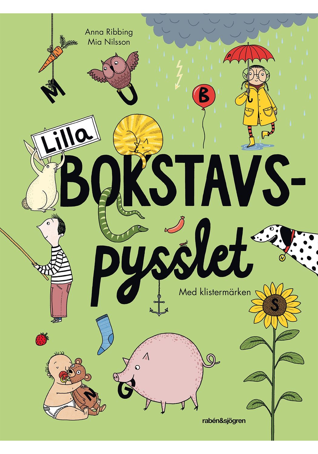 Illustratör: Mia Nilsson EvidonKlurigt och roligt bokstavspyssel med humoristiska bilder baserat på boken Lilla bildordboken av Anna Ribbing och Mia Nilsson.