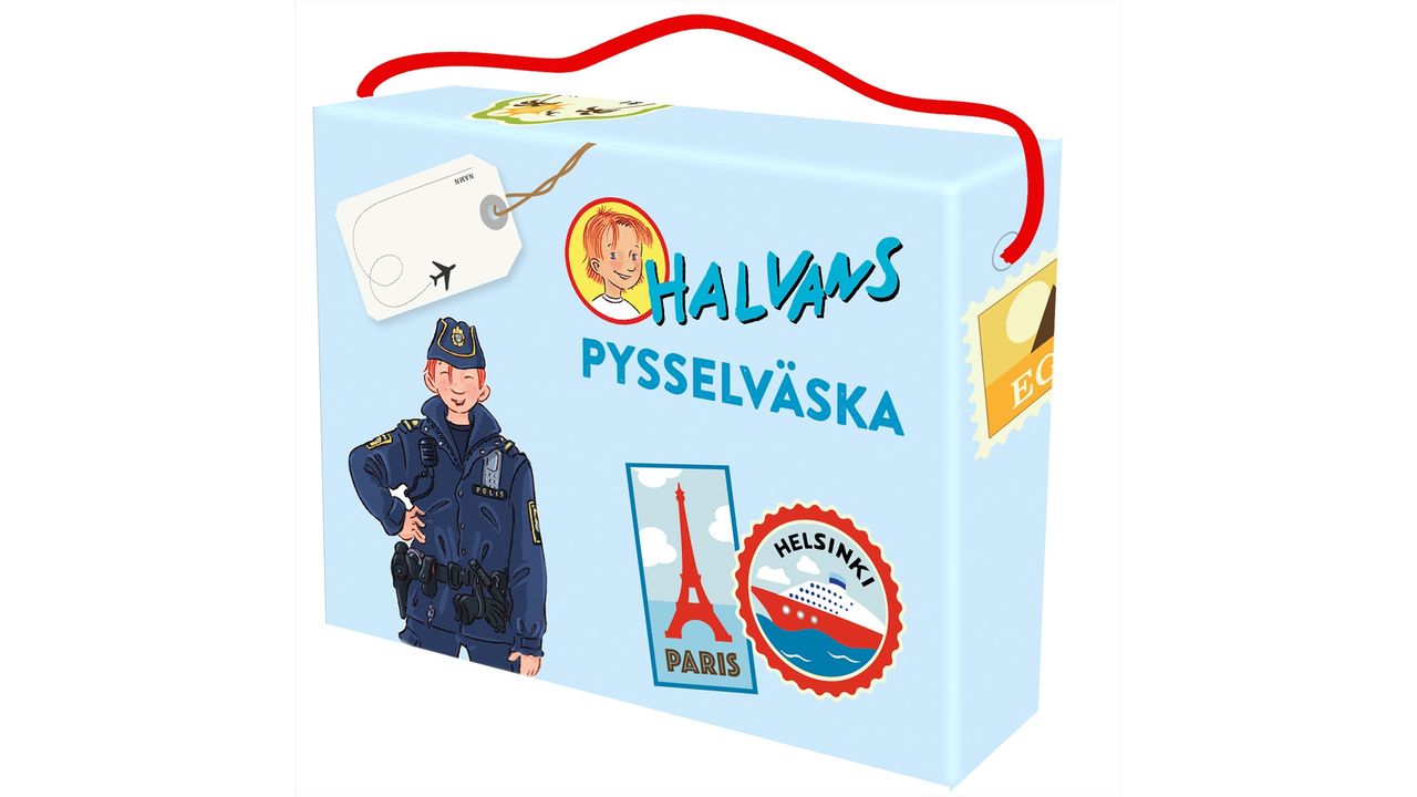 Med den här pysselväskan får barnen många roliga och mysiga stunder med Halvan! Pyssla, läs och pussla om och om igen. Väskan kan även användas till att fylla med pennor och andra små roliga saker. Dessutom den bästa kalaspresenten!