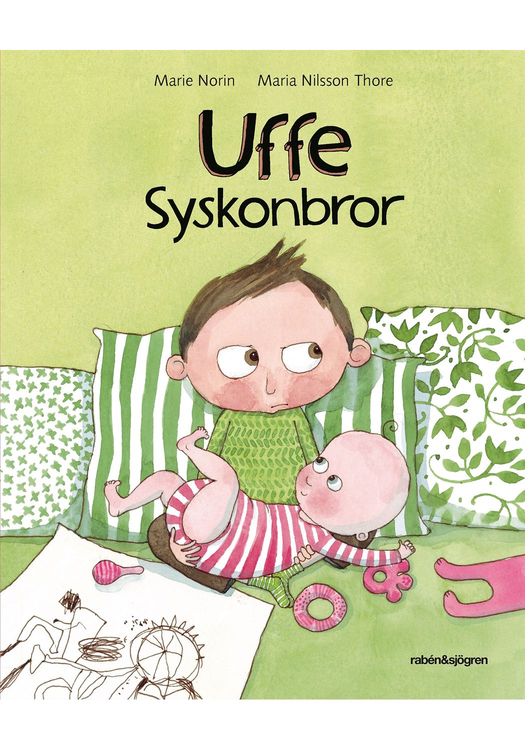 Illustratör: Maria Nilsson ThoreUffes mamma och pappa har fått en ny bebis. Och trots att Uffe har sagt att de ska kasta ut den så gör de inte det. Säger att man inte kan kasta ut en lillasyster. Varför inte? tycker Uffe. Bebisen får ju all uppmärksamhet. Uffe tänker uppfinna en grej, en bebismosare. Allt som åker in där blir mos och krymps. Men då får Uffe hålla i sin lillasyster, och hon är alldeles mjuk. Bebisen tittar rakt upp i hans ögon, och det ser ut som små speglar i bebisens ögon, två små Uffe i dem. Det kanske är lite för svårt att bygga den där bebismosaren trots allt.
