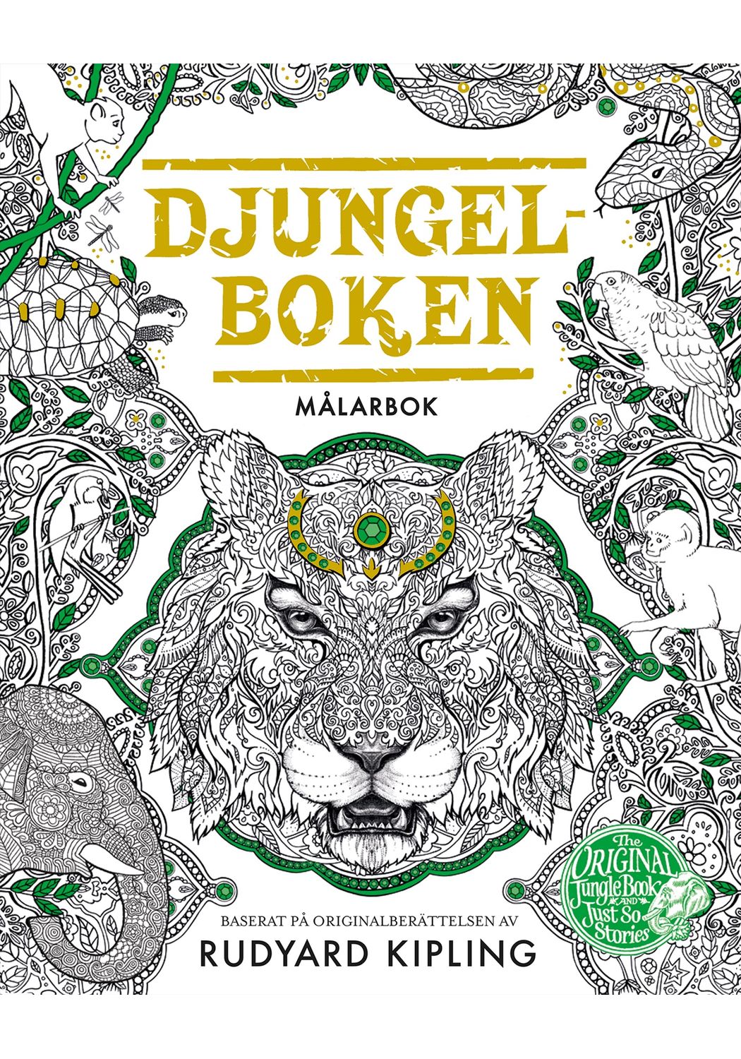 Följ med på ett äventyr in i den djupaste djungeln! Möt Mowgli, Baloo den bruna björnen, Bagheera den svarta pantern, pytonormen Kaa och den skräckinjagande tigern Shere Khan i en sagolik målarbok baserad på Rydyard Kiplings klassiker, Djungelboken. Här varvas illustrationer med citat från boken.