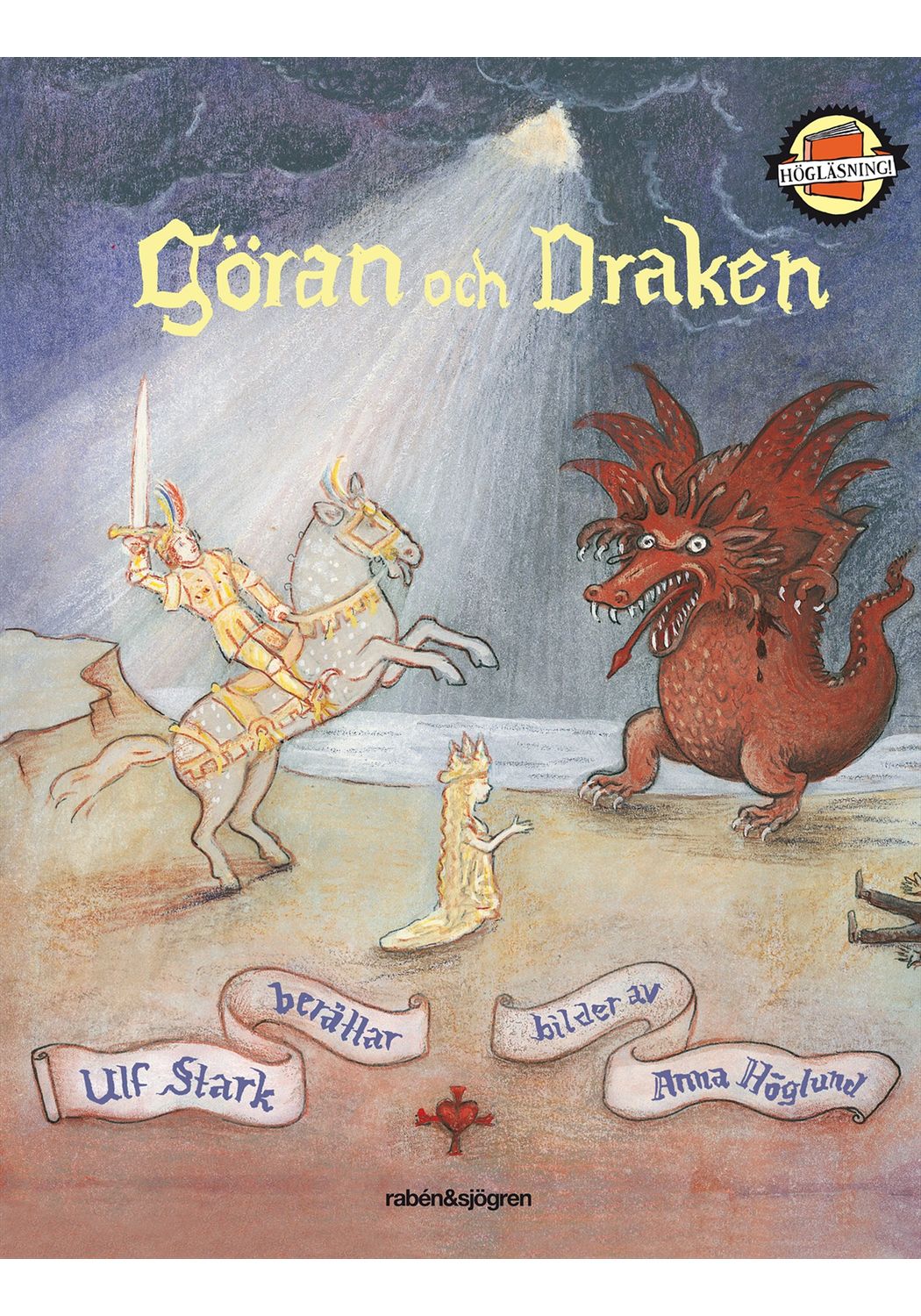 Illustratör: Anna HöglundGöran rider ut i världen för att söka sina drömmars prinsessa. En dag finner han henne och hon är vackrare än någon annan han sett. Men i prinsessans rike finns en grym och väldig drake och varje månad slukar den en jungfru. Kungen har lovat att ge allt han har till den som lyckas döda draken.