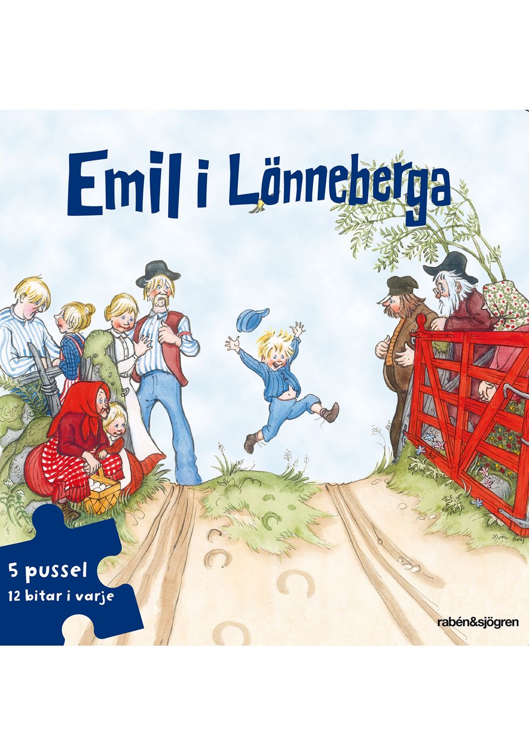 Illustratör: Björn BergPussla ihop bilder på Emil och de andra i Katthult. 5 pussel med 12 bitar i varje pussel. Välkända Emil-motiv i ett nytt, mindre format.