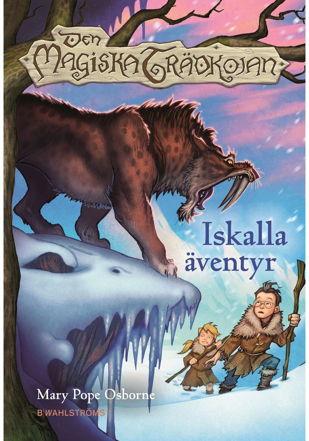 Illustratör: Sal MurdoccaÄnnu ett spännande äventyr väntar syskonen Hanna och Viktor när den magiska trädkojan sveper iväg dem till istiden! Här bekantar de sig med cromagnon-människor och en ullhårig mammut, upptäcker uråldriga grottmålningar, går vilse i den jättelika grottbjörnens grotta och står till slut öga mot öga med istidens allra farligaste best sabeltandstigern! Och som om inte det vore nog har de glömt vinterkläderna hemma! Kommer syskonen lyckas ta sig tillbaka till sin egen tid innan de fryser ihjäl eller blir uppätna av urtidsdjur?