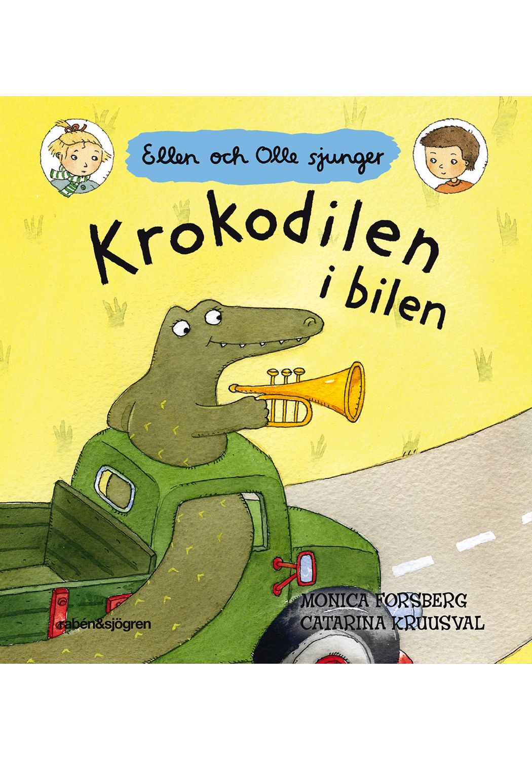 Vilken härlig krokodil! Glad och trumpetande kör han i sin fina retro-lastbil. Catarina har skapat en kul karaktär som med uppfinningsrikedom får plats med både sig själv och sin långa svans på flaket.