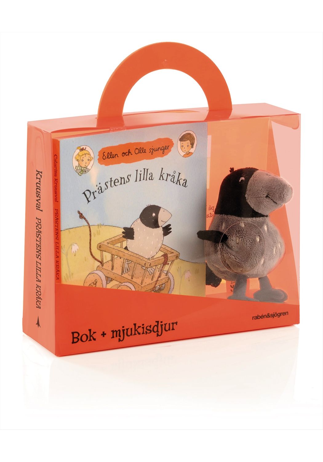 Illustratör: Catarina KruusvalDenna fina presentask med vispekboken Prästens lilla kråka och dessutom kråkan själv i mjukaste plysch (ca 10 cm hög)! Boken har stadiga kartongsidor att bläddra i och sjunga med om och om igen! Catarina Kruusval har valt några av våra mest älskade barnvisor och gjort de mest bedårande bilder till. Allt detta i en fin ask med handtag, perfekt för små barnhänder att bära. Favoritvisor, favoritbilder och favoritmjukisdjur.