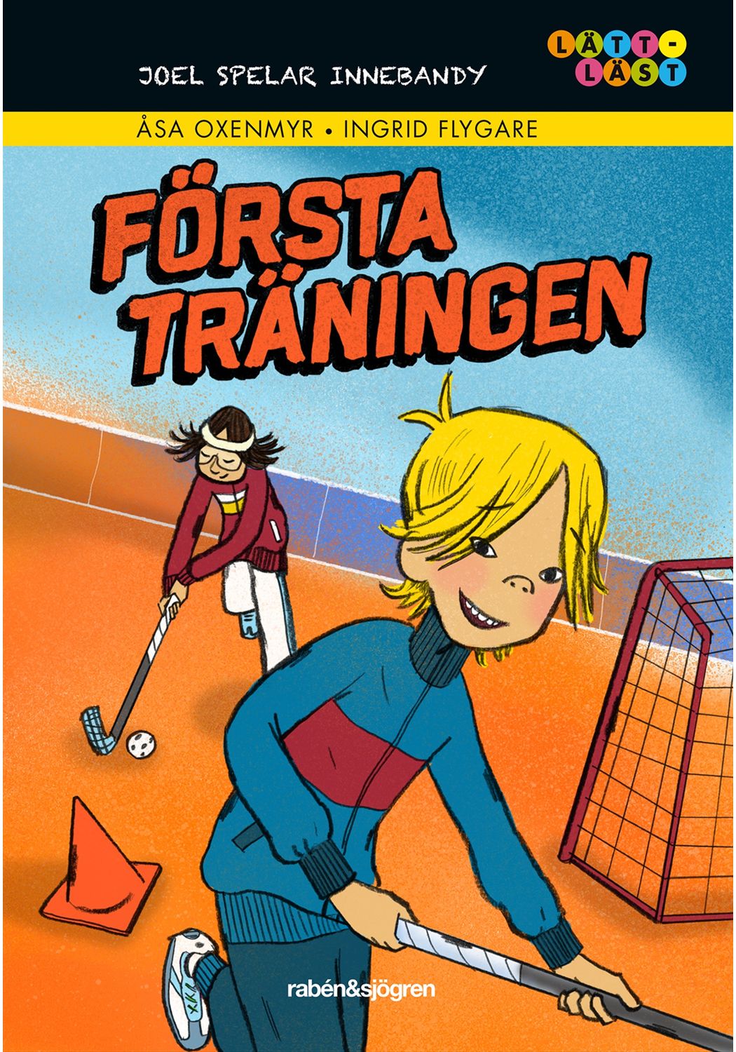Illustratör: Ingrid FlygareJoel gillar sport, och nu ska han börja spela innebandy! Han har provat en massa olika sporter, men han har inte riktigt trivts med någon av dem: tennis var ensamt och ishockey var vingligt. Fotboll var roligt, men han fick nästan aldrig spela match, så nu spelar han bara på rasterna.