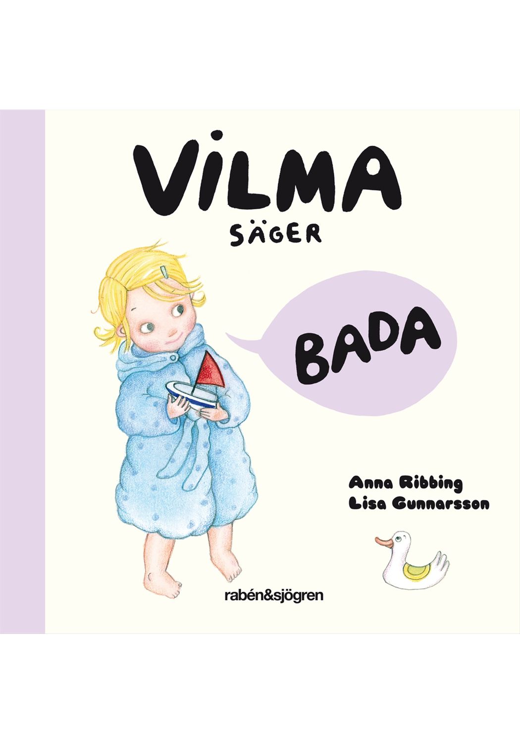 Vilma säger bada är den sjätte boken om påhittiga Vilma. Småbarnsböcker som på ett nära sätt skildrar det lilla barnets syn på världen. Pricksäkert beskrivs vardagen för de allra yngsta.
