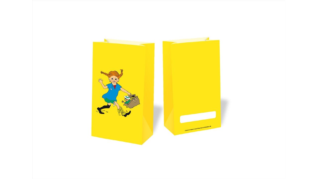 Överraska med Pippi Långstrumps kalaspåse! Fin papperskvalitet i härliga färger, och här finns även ett fält där du kan skriva barnets namn, så att alla kan få med sig sin påse hem efter kalaset.