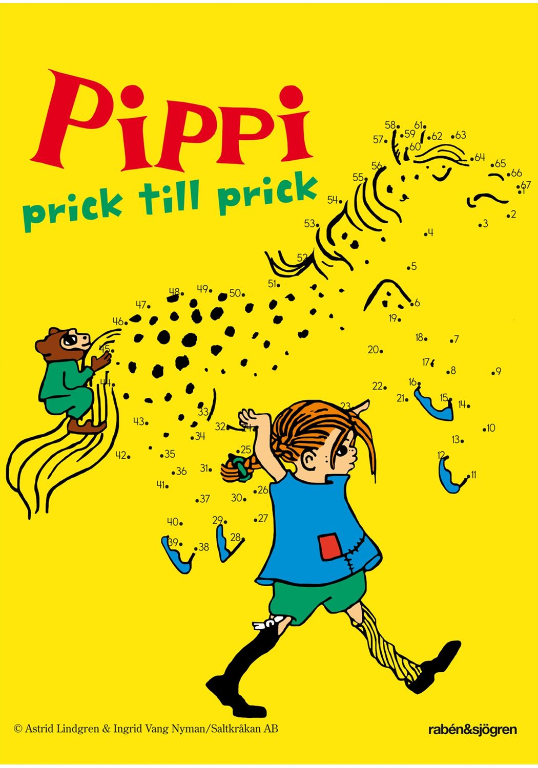 Pippi - Prick till prick är klurigare än vad man tror. Prickar och siffror ger fina Pippi-bilder som också går att färglägga. Hela 32 fullmatade sidor med prick till prick-pyssel!