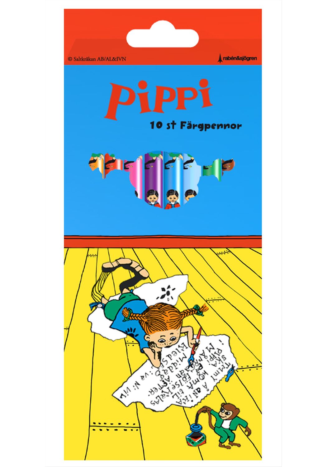 Tio härliga färgpennor med Pippi och hennes kompisar på.