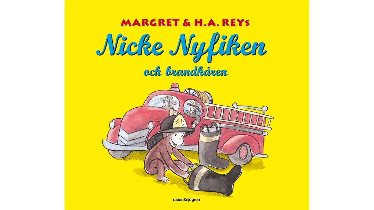 Nicke Nyfiken och hans vän mannen med den gula hatten får komma på besök till brandstationen.