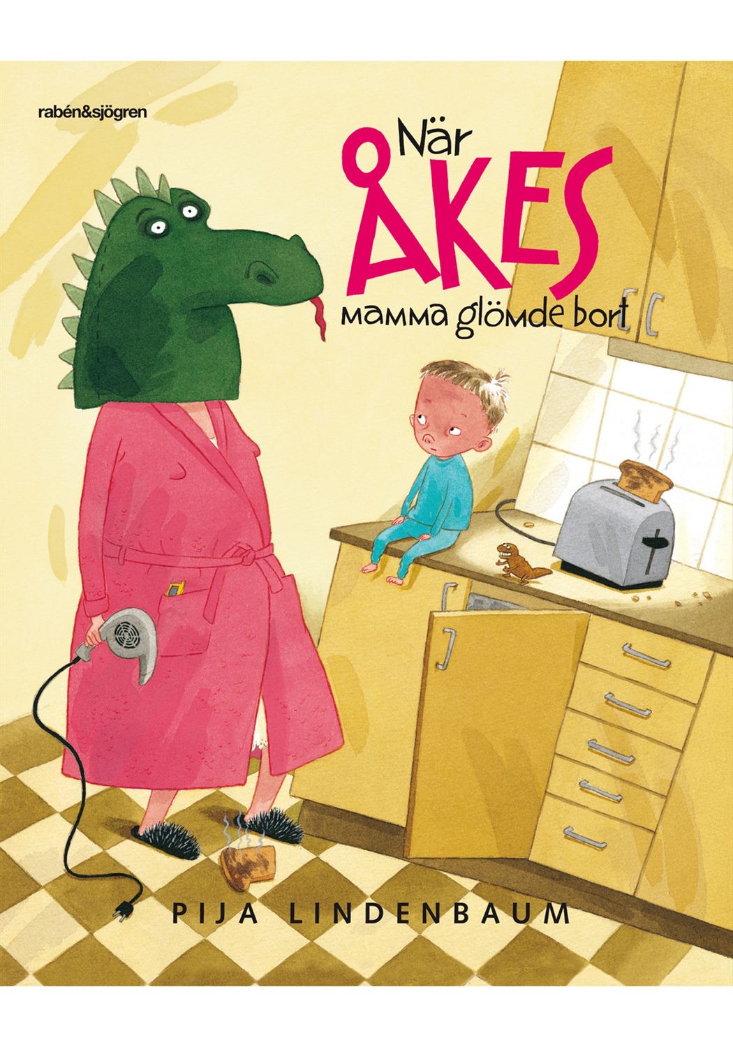 Illustratör: Pija LindenbaumÅke, Pija Lindenbaums nya bilderboksstjärna, är en liten doer som håller på med dinosaurier när han inte råkar in i härliga äventyr, som här. Åkes mamma blir vild och galen om morgnarna. Det ringer i hennes mobil och Åke måste skynda sig för att de inte ska komma för sent till dagis.