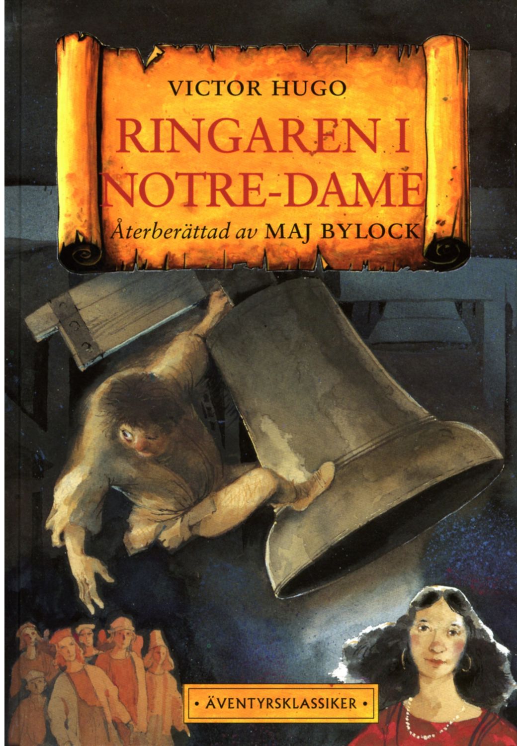 Illustratör: Tord NygrenQuasimodo, den vanskapte ringaren i Notre-Dame, med sitt enda öga och sina otäcka vårtor, blir förälskad i den vackra Esmeralda. Hon sägs vara ett hittebarn som tagits om hand av zigenarna. Esmeralda blir anklagad för häxeri och mord och dömd till döden. Men Quasimodo försöker rädda henne?