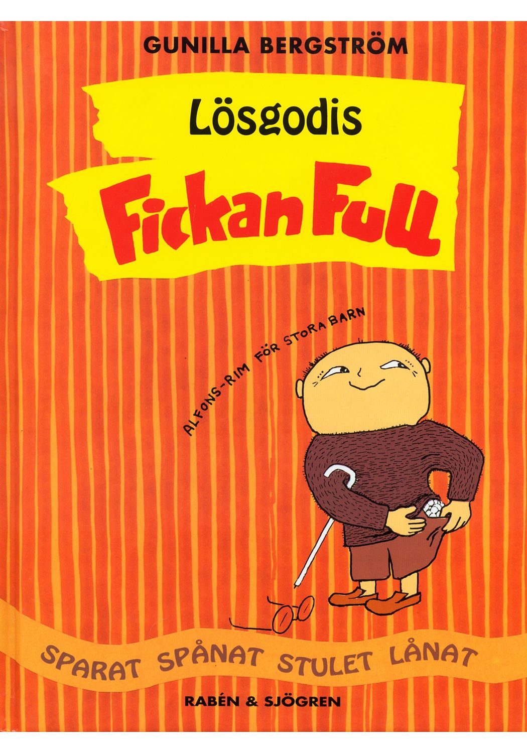 Gunilla Bergström, 1942–2021, föddes i Göteborg där hon också tog journalistexamen. Mest känd är hon som bildskaparen och författaren bakom berättelserna om Alfons Åberg, idag en klassiker för miljoner barn i många länder. Hon har också skapat rim och berättelseböcker, gjort vistexter ihop med Georg Riedel, libretton för en barnmusikal, arbetat med barnteater och tecknad film. Hon har skapat ordspråk och tok-filosofi i de två Lösgodis-böckerna, samt illustrerat pekböcker och anses vara en av våra främsta barnboksförfattare.