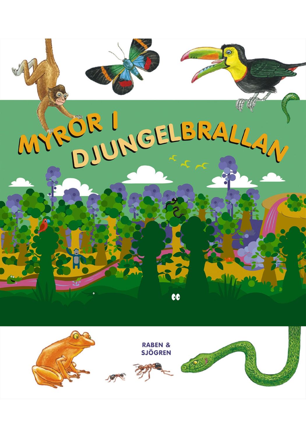 Illustratör: Björn BergenholtzDjungeln är grön, grön, grön. Här växer det så det knakar. Många av världens djur bor i en djungel. Och ingenstans finns så många myrarter som i djungeln. Så då åker vi, då:
