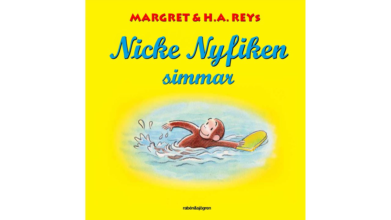 Illustratör: H. A. ReyEn varm sommardag är Nicke Nyfiken glad över att vara vid en stor härlig simbassäng. Han vill plaska omkring, simma, leka i vattnet och kanske äta en god isglass. Men Nicke Nyfikens vanliga nyfikna busighet gör att badvakten håller ett öga på honom. Vid bassängen sitter också Lucy som inte är så simvan än, hon vågar sig inte i vattnet.