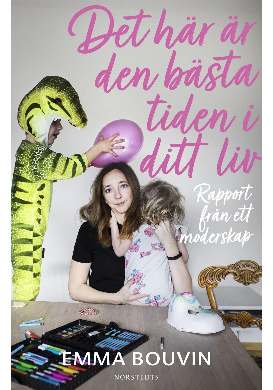 Emma Bouvin är en av Dagens Nyheters mest lästa krönikörer. Med sin osvikliga humor och stor värme fångar hon i sin debutbok livets väsentligheter och förtretligheter, allt från första dejten med barnens far och kisset på stickan till dagen då hennes unge utan förvarning blivit sex år och ska börja skolan. Här finns svärtan och glädjerusen, bråken och vardagslyckan. Och så den där kärleken som trots allt är större än allting annat.