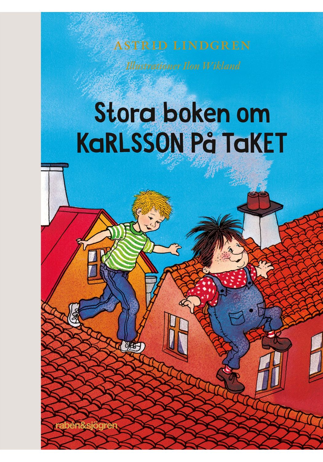 Stora boken om Karlsson på taket är en tjock, härlig samlingsvolym med de tre Karlsson på taket-böckerna: Lillebror och Karlsson på taket, Karlsson på taket flyger igen och Karlsson på taket smyger igen. Böckerna har svartvita illustrationer av Ilon Wikland.