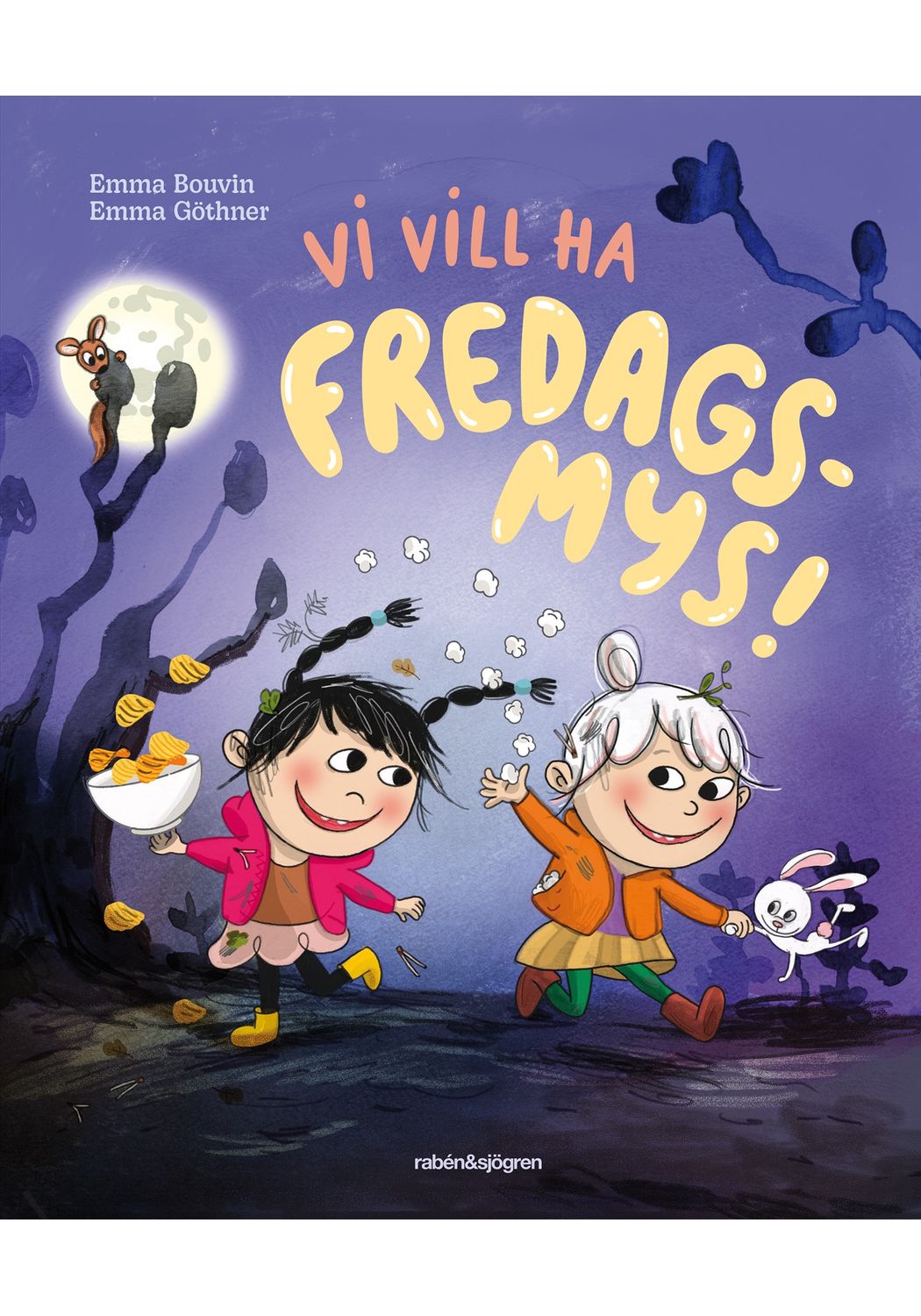 Kompisarna Elly och Alba har planerat allt in i minsta detalj: de ska samla sina gosedjur och ligga på mjuka kuddar och se på Frost. Men viktigast av allt: de ska äta hallon, blåbär och chips. Så när Ellys mamma dyker upp med popcorn är hela fredagsmyset förstört. Vi hade inga bär, förklarar mamman. Då bestämmer sig Elly och Alba för att smyga ut och plocka själva. Men i skogen är det mörkt och lite läskigt och istället för bär hittar de Ellys sura granne Thea, lipande som en unge. Och hon som alltid kallar dem för småungar...