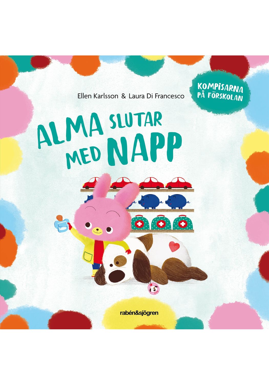Illustratör: Laura Di FrancescoIdag är dagen när Alma ska sluta med napp! Mamma och pappa säger att Alma är duktig och stor. Efter förskolan ska de gå till en leksaksaffär där hon ska få välja något i stället för nappen, vad som helst! Men när de kommit fram till affären vill Alma bara gå hem. Inget är lika bra som nappen! Fast plötsligt får hon syn på något på en hylla högst upp. Något JÄTTESTORT och lurvigt …