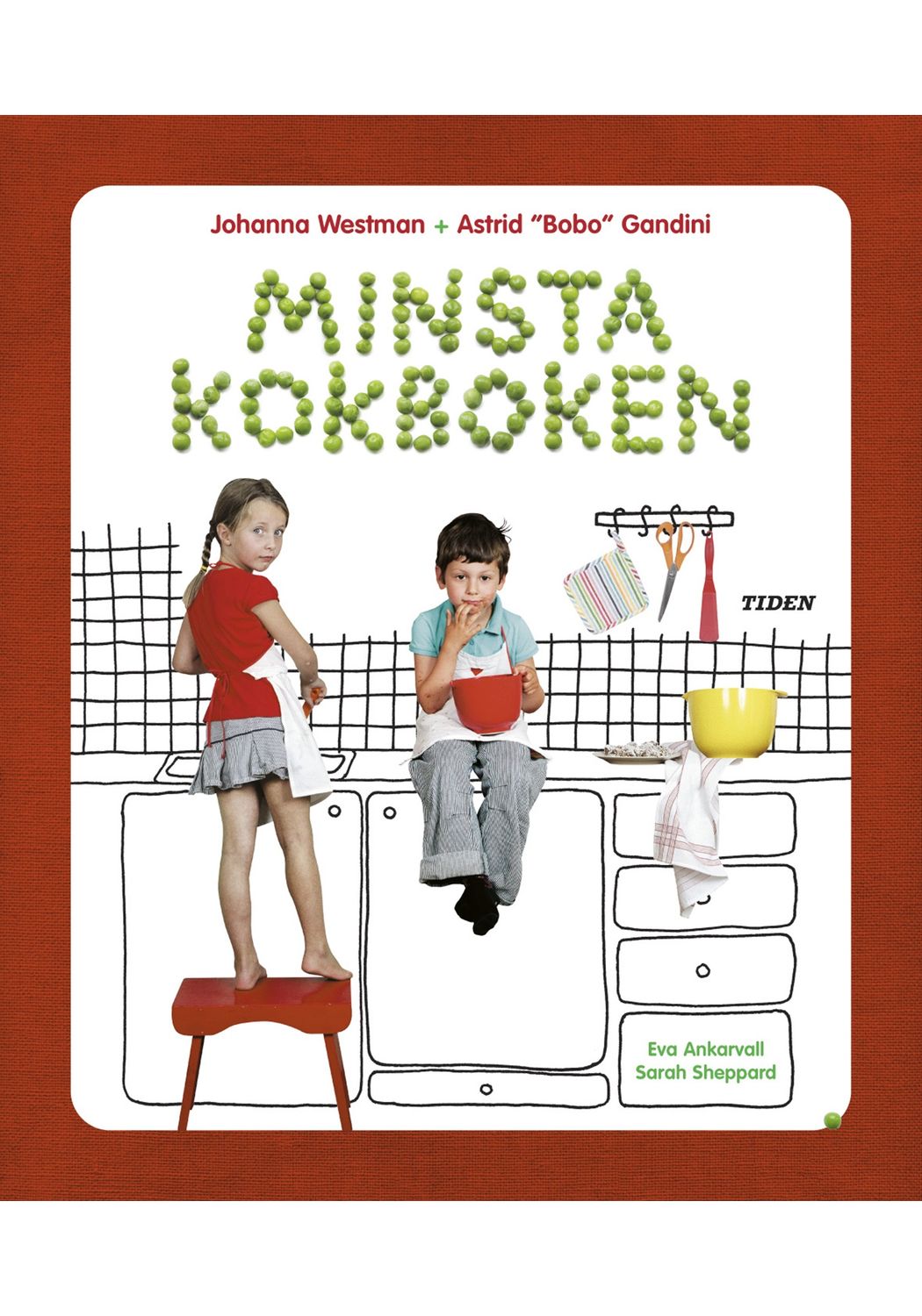 Astrid "Bobo" Gandini (6) har lagat alla rätter, Eva Ankarvall (39) har tagit glada och tydliga steg-för-stegbilder under arbetet/leken, Sarah Sheppard (34) har klippt och klistrat ihop ingredienser, verktyg och recept till superaptitliga uppslag och världens ärtigaste omslag (!) och jag (36 1/2) har smakat, diskat och tagit fram recept som passar de minsta, mest oerfarna men kräsnaste kockarna i kökshistorien.