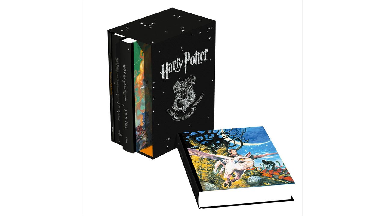 De första tre delarna i serien om Harry Potter i vacker och välgjord presentbox. Dessutom en lång intervju med J. K. Rowling och en bild av Alvaro Tapia, Harry Potters svenske illustratör.