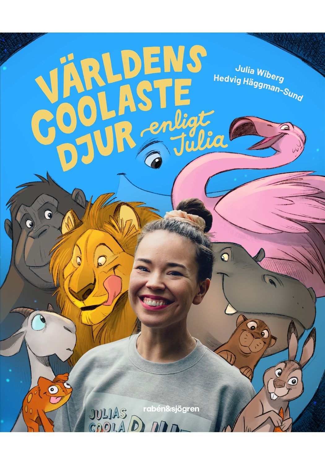 Julia Wiberg är känd från SVT:s "Djur med Julia", Spotifypodden "Julias coola djur", YouTube-kanalen "Julias djur" och sin blogg på Mama. I Världens coolaste djur enligt Julia har Julia samlat sina allra coolaste djur, oemotståndligt porträtterade av illustratören Hedvig Häggman-Sund. Tillsammans har de skapat en härligt rolig och färgglad bok med lättillgänglig och oväntad fakta!