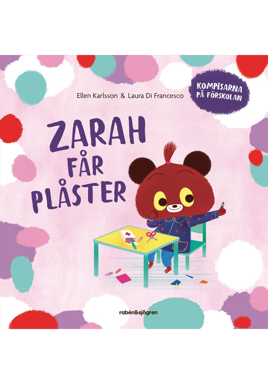 Illustratör: Laura Di FrancescoDet är pysselstund på förskolan och Zarah ska klippa en stjärna. Hon är jättebra på att klippa. Men så plötsligt – AJJJJ! Det kom blod! Alla kompisarna tittar på medan pedagogen Bosse hjälper Zarah att tvätta såret. Hon får välja vilket plåster hon vill ur asken. Nu känns det bättre!