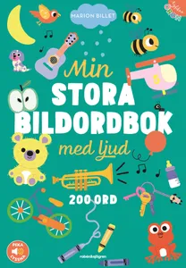 Illustratör: Marion BilletEn stor bildordbok för de allra yngsta i stadig kartong! Boken innehåller 50 ljud och massvis med saker att titta på och känna igen. Lyssna på ljudet, leta och hitta. Vad är det för ljud? Är det en åsna? Kan du hitta åsnan? Boken ingår i succéserien Nyfikna öron, slitstarka och stadiga böcker med glada, tilltalande bilder och fint ljud.
