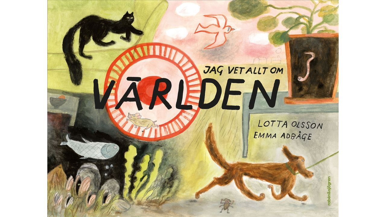 Illustratör: Emma AdBågeVad är världen? För masken är världen mull. För loppan päls. Hamstern känner världen som ett hjul och ett bo, kattens värld är ett rum och händer som smeker. Hunden vet att världen är dofter, pinnar och promenader, medan fågeln ser vindar och vidder och fisken djup och glitter.
