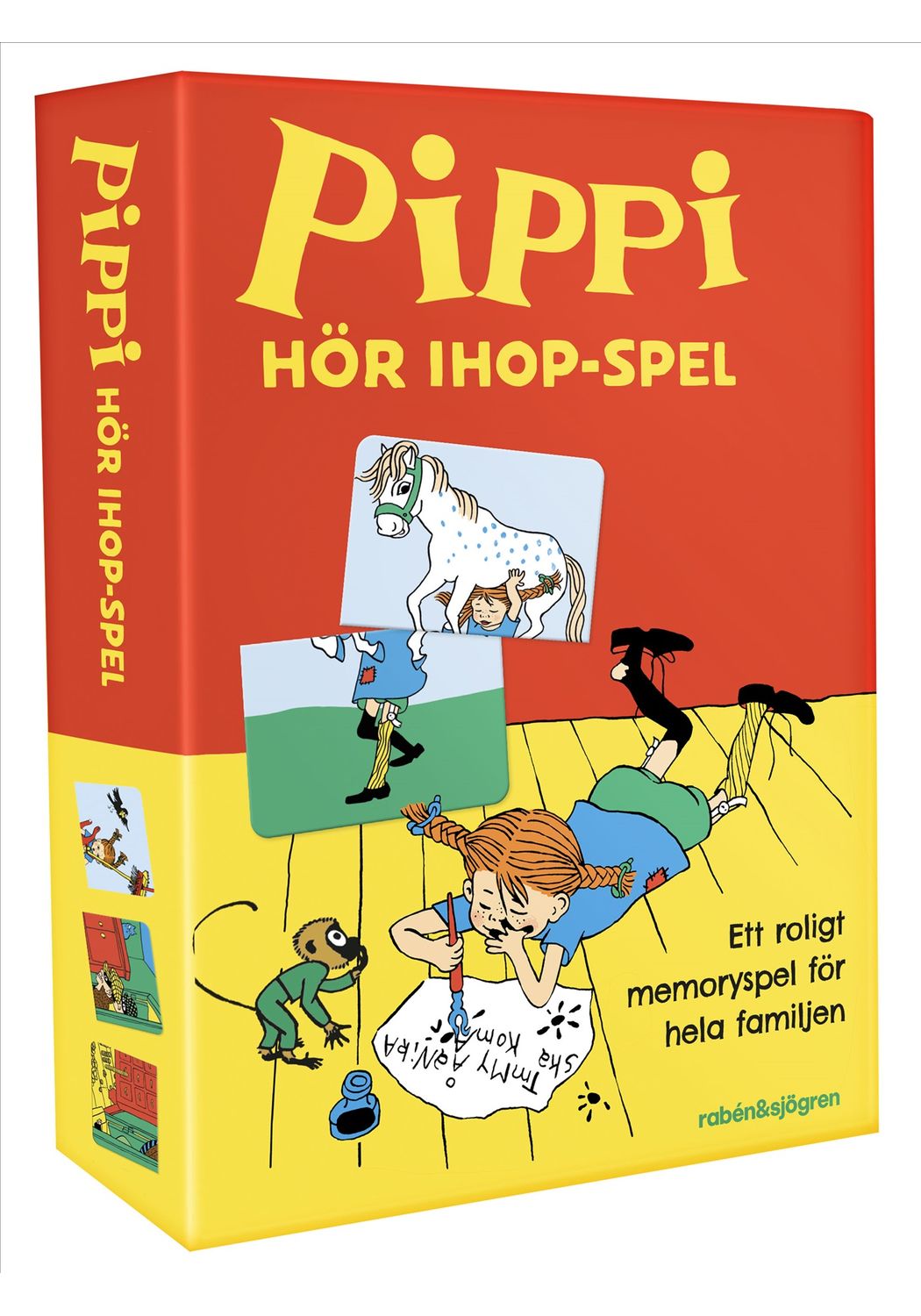 Illustratör: Ingrid Vang NymanI Pippi hörihop-spel gäller det att para ihop bilder som hör ihop och tillsammans bildar en hel figur. Ett roligt och lite mer utmanande spel som tränar både minne och associationsförmåga.