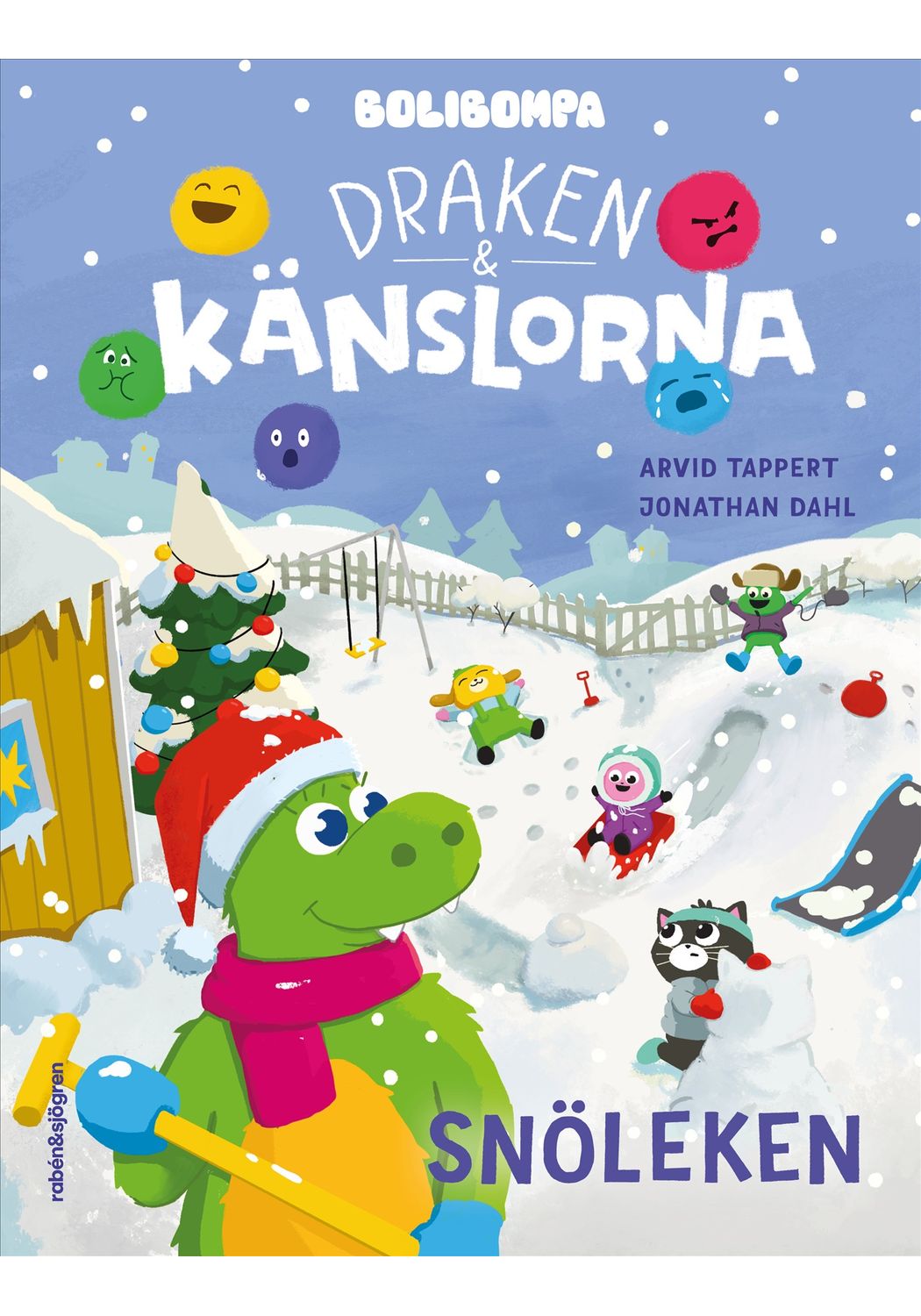 Äntligen vinter och snölek på Drakens förskola! Lammet gör snögröt till Tomten som ska komma snart, Hunden bygger renar i snön och Grodan har fullt upp med snökulorna till förskolans fina gran. Det är bara Katten som inte har något att göra. Kanske vill Grodan ha snöbollskrig? Men nej! Grodan tycker att Katten bara förstör. Tänk om inte tomten kommer att komma nu? Stackars Katten!